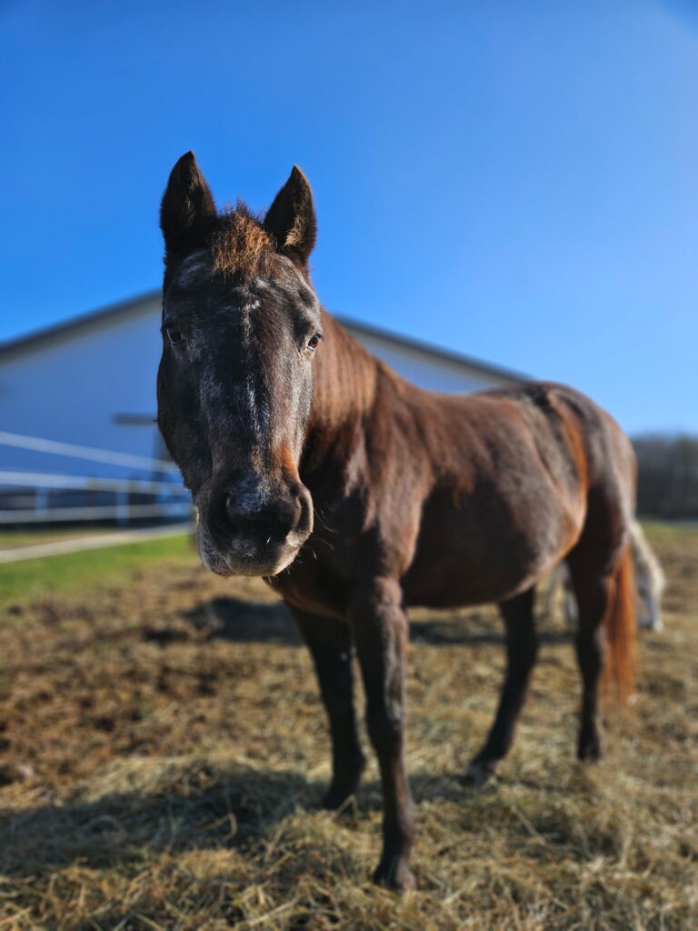 When it came time for Jimmy to retire from the demands of a collegiate program, we were thrilled to welcome him to LTRC, where he now enjoys continuing his work at a slower pace. He has quickly become a favorite in our herd with his steady presence and kind personality.